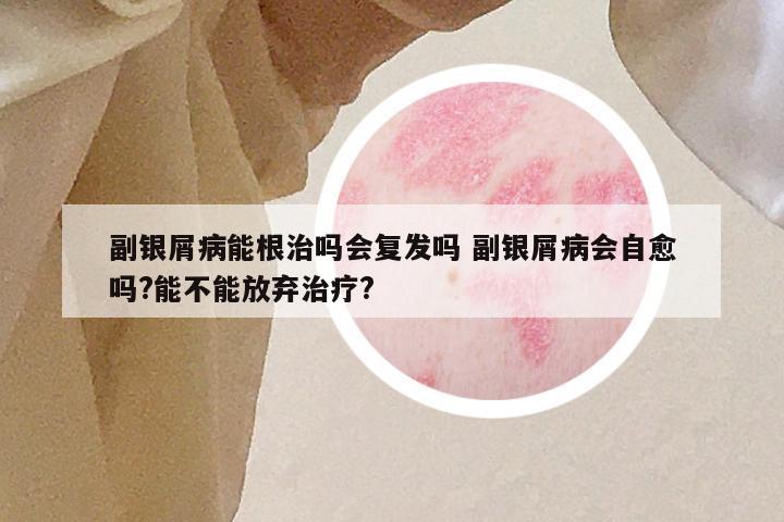副银屑病能根治吗会复发吗 副银屑病会自愈吗?能不能放弃治疗?