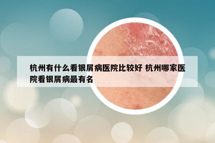 杭州有什么看银屑病医院比较好 杭州哪家医院看银屑病最有名
