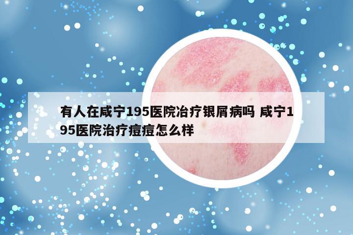 有人在咸宁195医院冶疗银屑病吗 咸宁195医院治疗痘痘怎么样